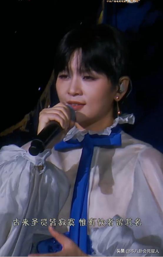 另一套造型依舊穩定發揮,亮片半裙配白色襯衫,低頭撫琴的中式美感,完美襯托出了她的大青衣地位。