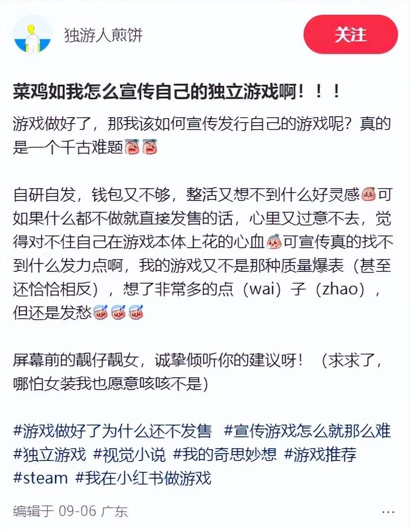 “24小時之內遊戲評測不破10,那遊戲基本就等於暴死了,這種事情不要啊。”懷着這樣的心態,他在各路社交平臺的個人賬號上開始吆喝,求助喝油(盒友)們、姐妹們買份試試,體驗好的話可以點個好評。