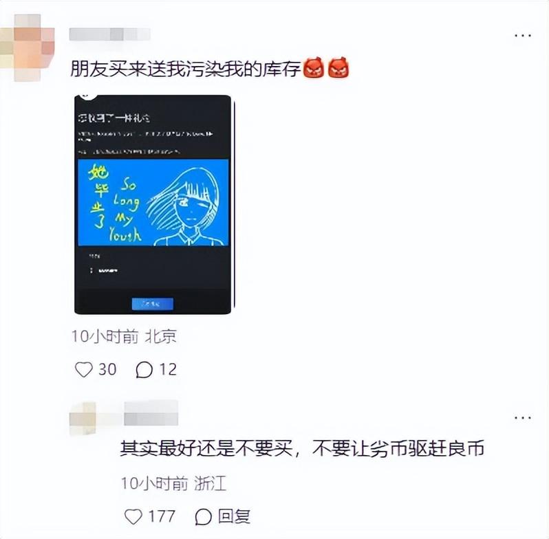 甚至於,真的已經有玩家將《她畢業了》當作髒東西,達成所謂“污染庫存”的效果。
