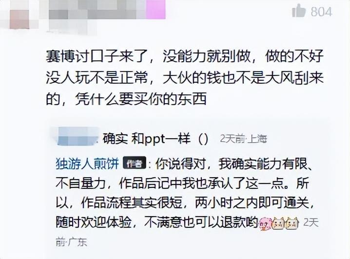 儘管如此,他依然努力維持溝通,希望玩家能親自體驗遊戲、覺得不合適可以退款。這種帶有真誠又略顯笨拙的宣發方式,最終讓整件事呈現出一種複雜的矛盾感——既有創作者想被理解的迫切,也有在輿論壓力下的無力與誤解。