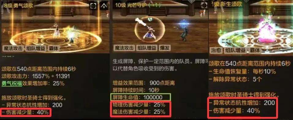 然後再配合“光芒守護”和“新生頌歌”這2個技能,就可以實現100%減傷率!