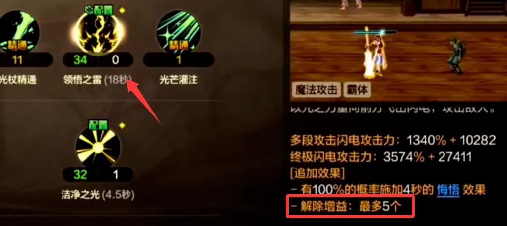 而更巧合的在於,奶媽的“領悟之雷”可以清除敵人的5個BUFF!