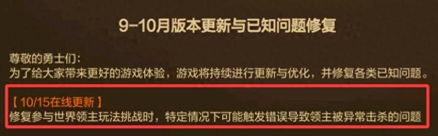首先是修復了“世界領主”在特定情況下可能被異常擊殺的問題,這個問題不大,15號直接不停機更新了10兆內容就修好了。
