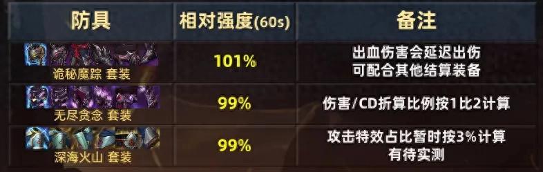 “詭祕魔宗套”雖然修復了出血異常,但“出血詞條”本身並沒有比“技攻”更出色,因此這套裝備也只能算中庸。
