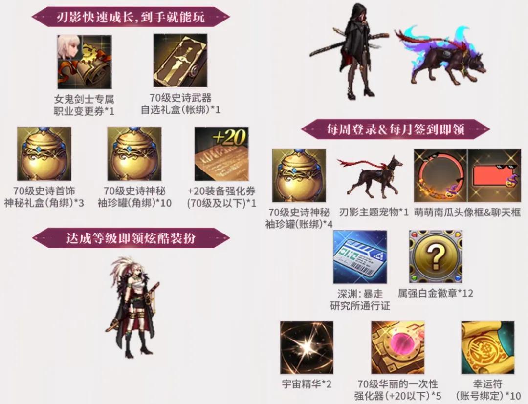 關於“刃影成長活動”,本次新職業成長活動足夠豪華,總計可以拿到: