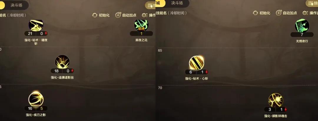 20~70級技能,全部加滿,其中只有25“薄暮利刃”只點1級即可。