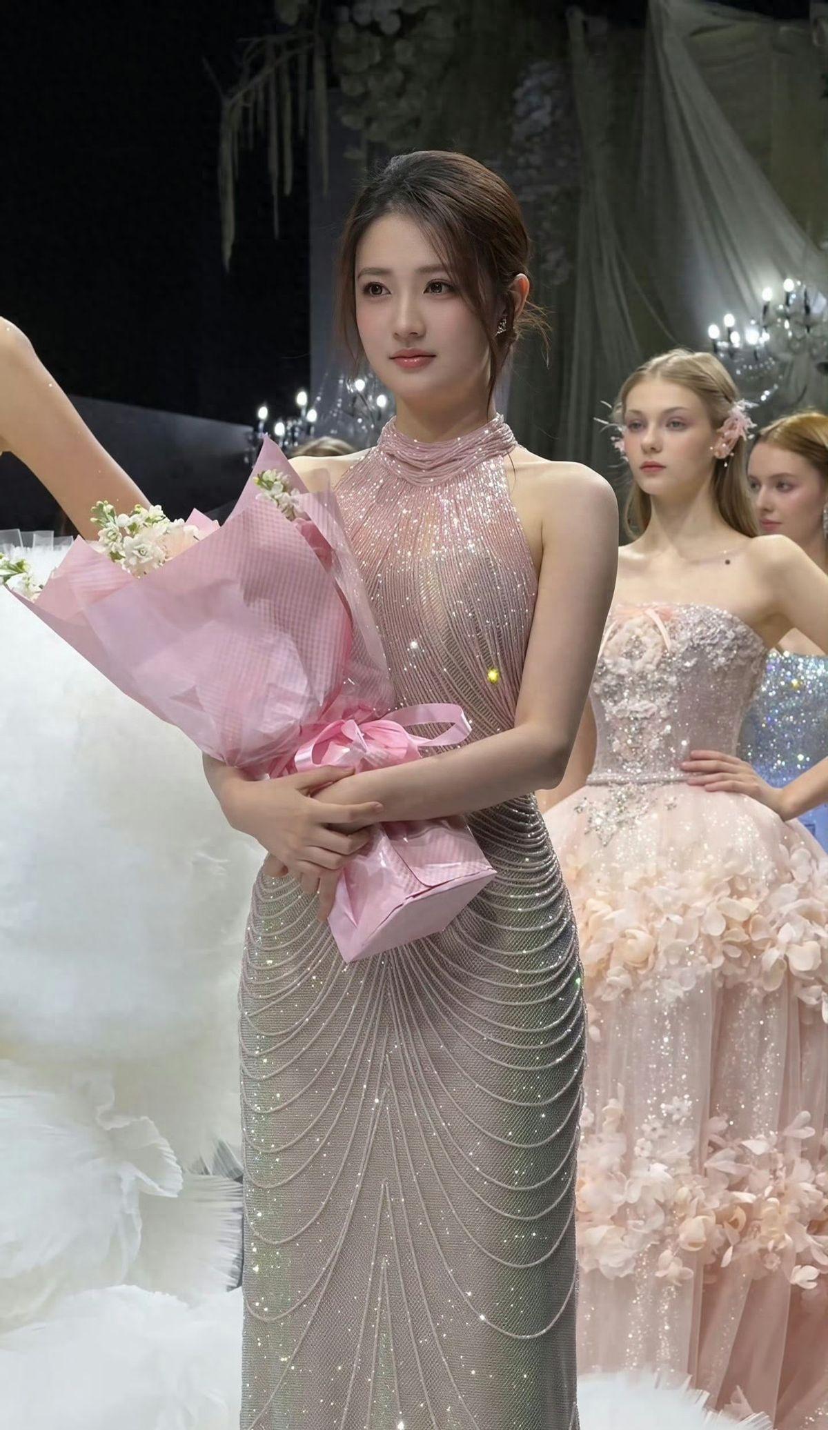 不得不說,徐璐這一次的妝造和她的匹配度太高了。漸變粉色襯托的肌膚白皙透亮,30歲看上去像20出頭的少女,五官立體精緻,特別抗打,身材苗條纖細堪比超模。