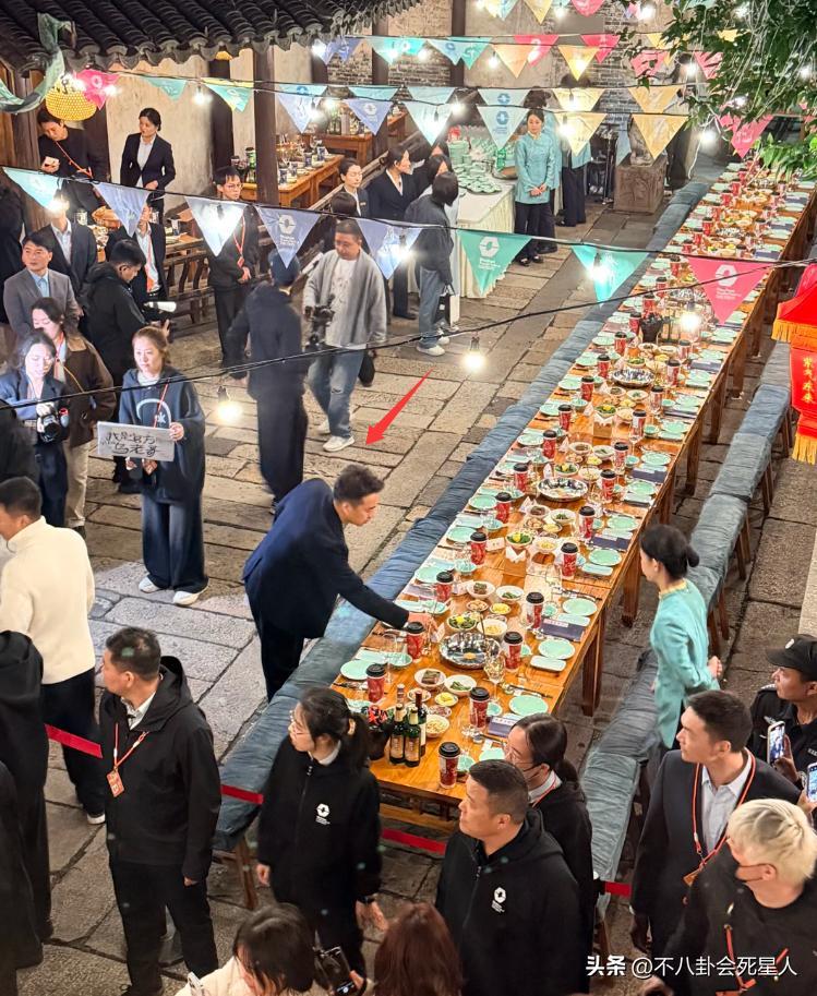這場“長桌宴”在戶外,不少普通遊客都看到了在場的明星。