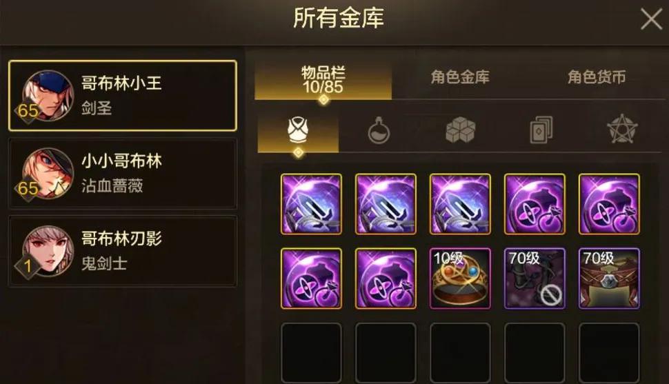 其次增加了“所有金庫”的選項,可以很直觀看到其他角色揹包或金庫中的道具、貨幣等信息;
