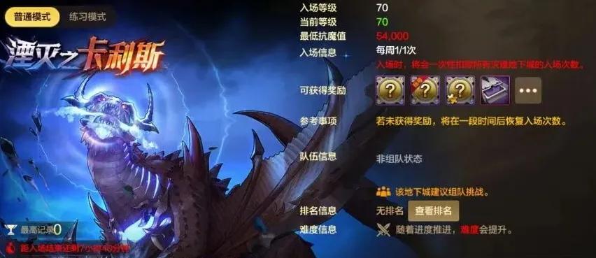 進場抗魔值門檻爲54000點,每週一刷新次數,和“雷龍”共享獎勵!