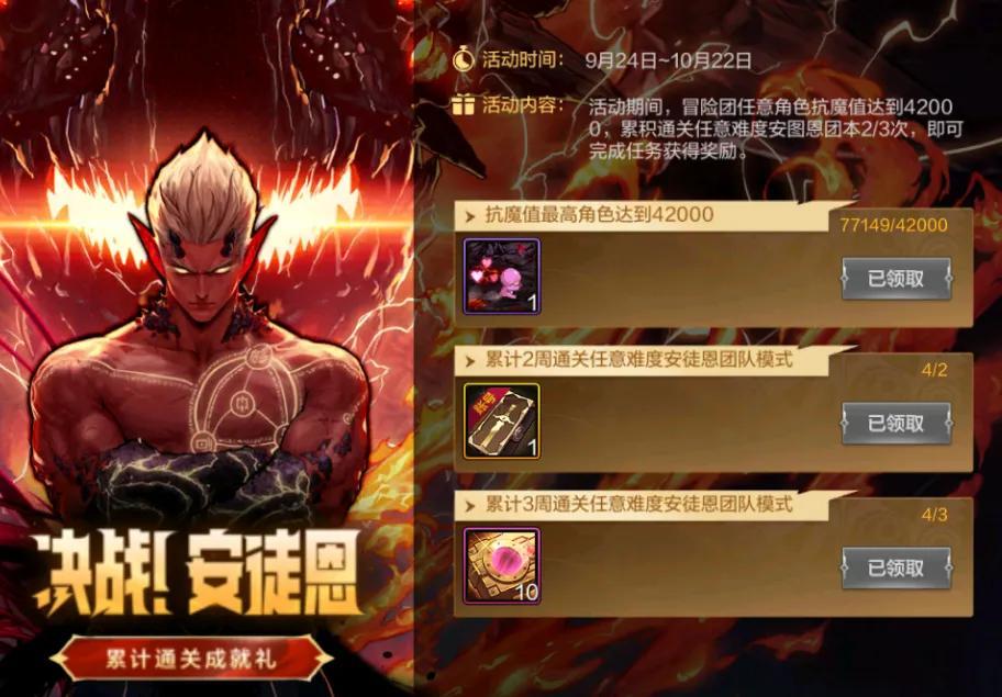 以“團長”的身份通關安徒恩3次,就可以領取1個安徒恩團長稱號+1套綠色雪人套。