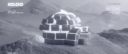 另一個,則是爲鏈上社區Igloo製作的官網。當我們的光標移動時,構成雪屋的冰磚隨之聚合或者分離。參數化的粒子、波形、線條,將抽象的企業概念可視化,無疑讓設計在視覺呈現上更有感染力和沉浸感。