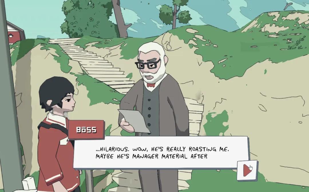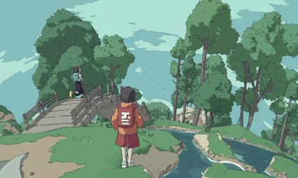 視頻裏,Low-fi的手繪美術風格配上舒緩的背景音樂,營造出一種愜意又清新的氛圍。玩家扮演的郵遞員在3D的城鎮、廣場、森林、寺廟間漫步穿梭,與不同的NPC進行對話交互。