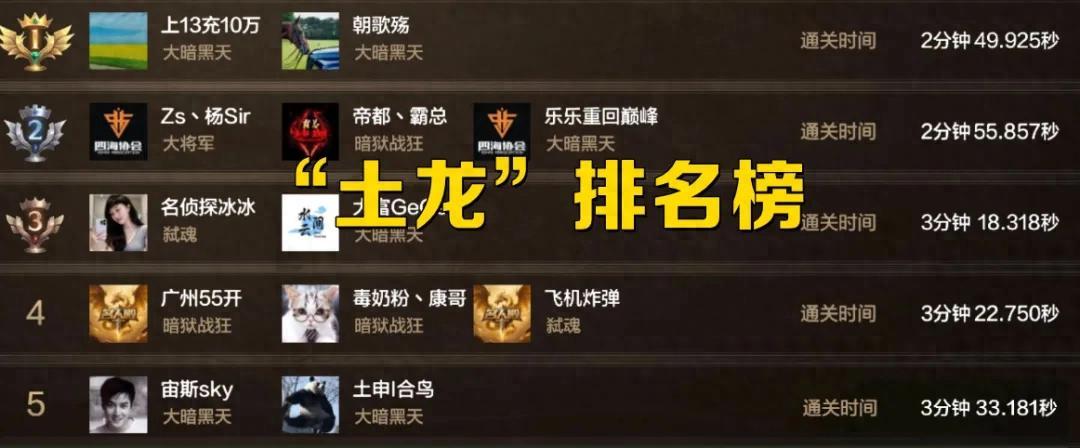 雖然稱之爲“土龍榜”,但實際上也可以理解爲“氪金榜”,凡是能夠上榜的玩家非富即貴!