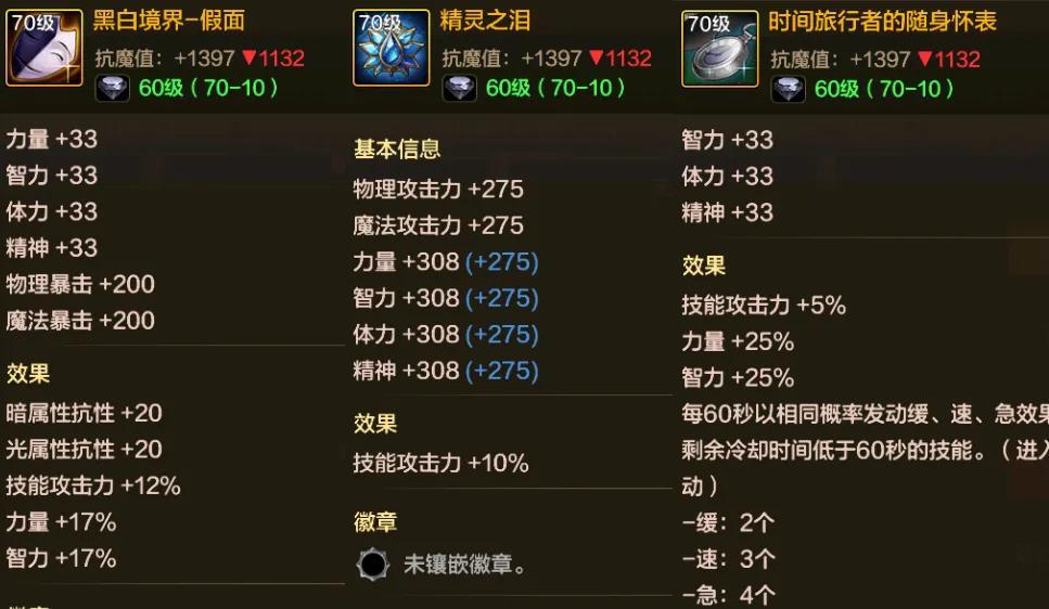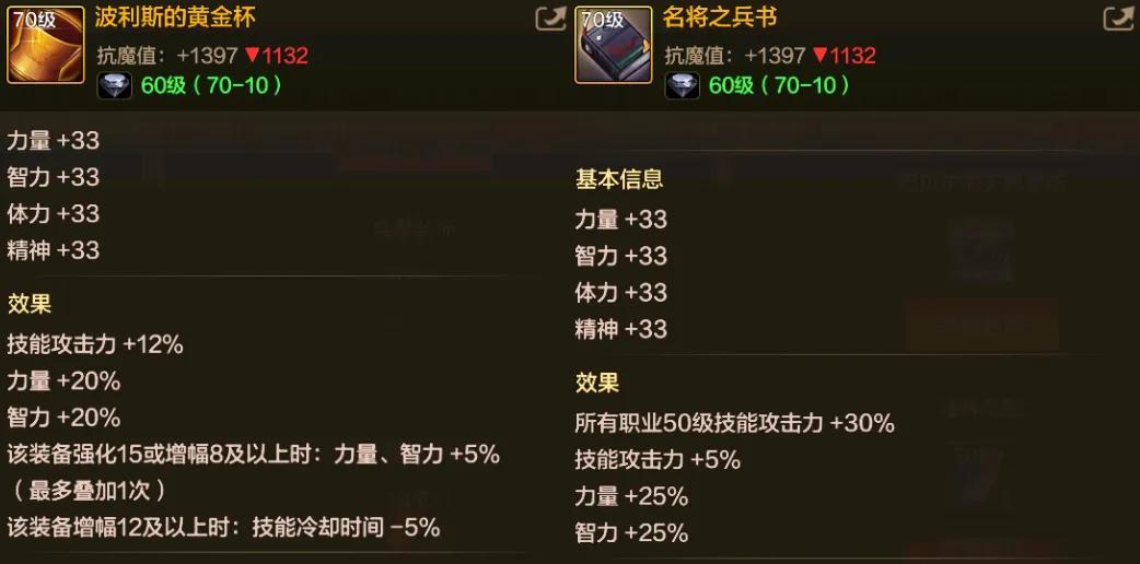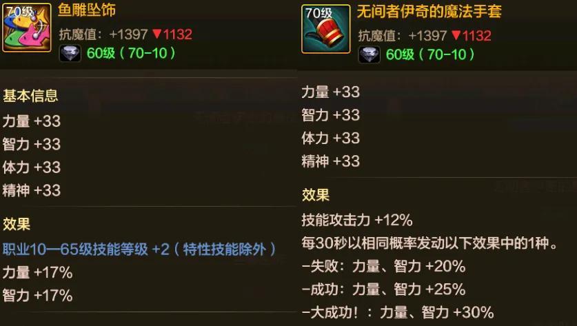 這2件裝備的表現就中規中矩了,“魚雕”增加技能等級對部分職業提升較大,但也不如黃金盃那麼百搭;