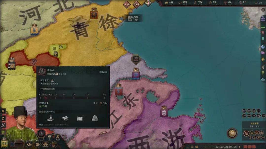 不過科舉考試仍是這套賢能機制的核心,除了能夠直接獲取巨量賢能之外,通過考試的級別決定了角色的品第上限,通過鄉試可以得到最高六品的賢能品第,通過會試可以提高到四品,通過殿試則能提高至一品。