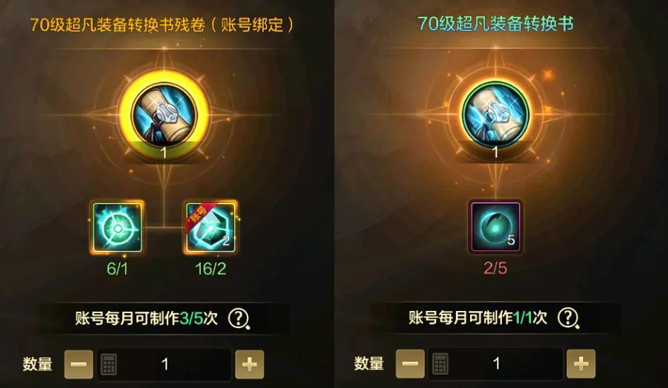 每個月可製作5張超凡裝備轉換書破券子、以及1張成品轉換書,相當於每個月保底一件超凡了。