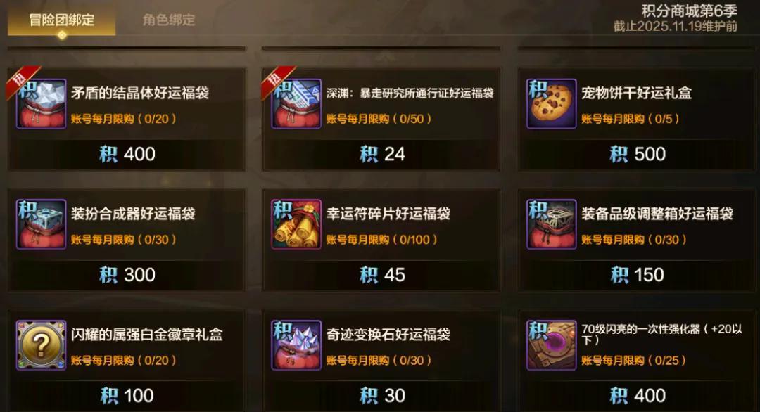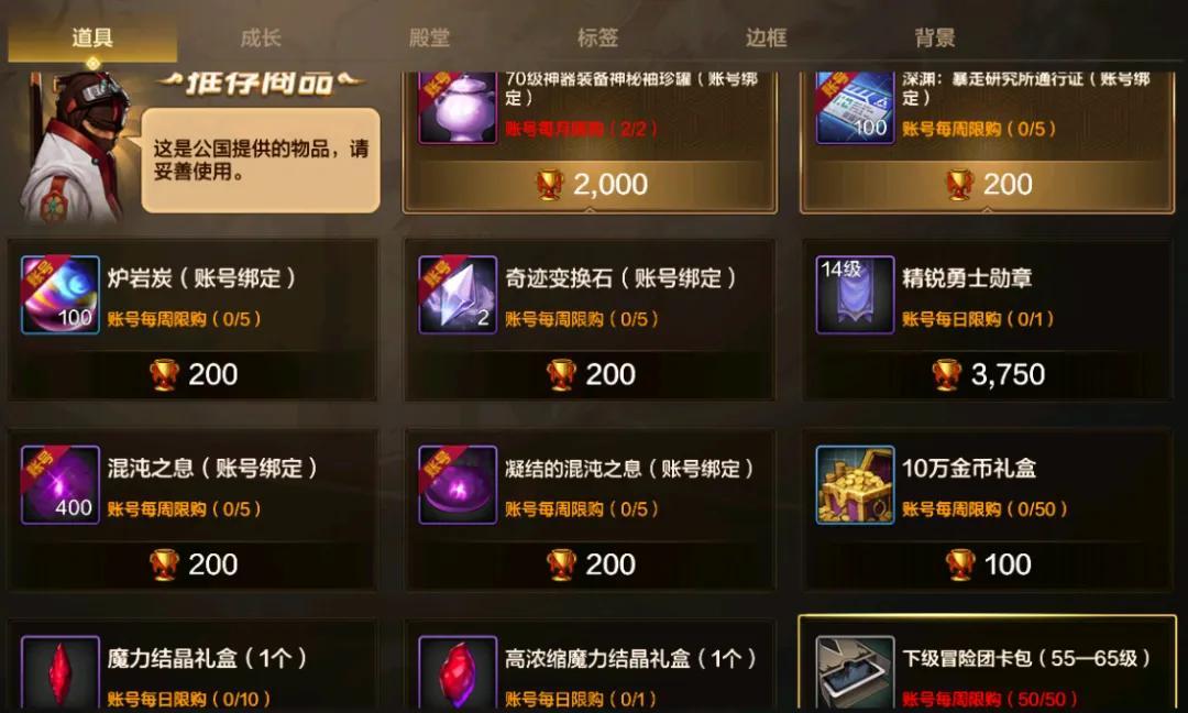 這裏的道具大部分都是每月刷新,其中尤爲推薦的有寵物餅乾、屬強徽章、以及矛盾結晶體。
