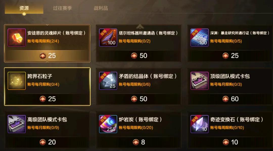 除此外如紅豆、矛盾結晶體、頂級卡包等,也都是比較推薦的,深淵票和爐巖炭反而不太重要了。