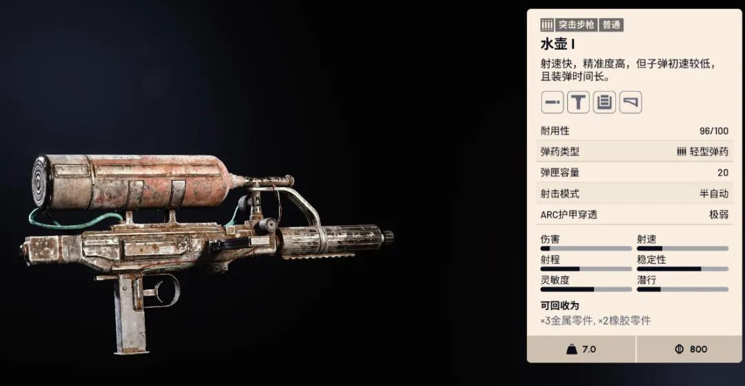 另外,這種沉浸感還體現在遊戲的諸多細節部分。比如武器和道具的造型也是一股濃厚的“廢土風”,裸露的電線、生鏽的外殼以及從其他物品上拆下來的握把,倒也非常符合遊戲“搜”的主題。