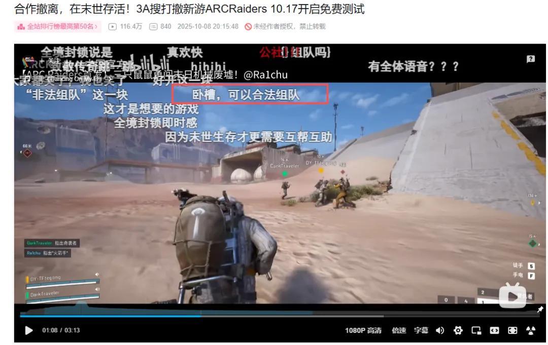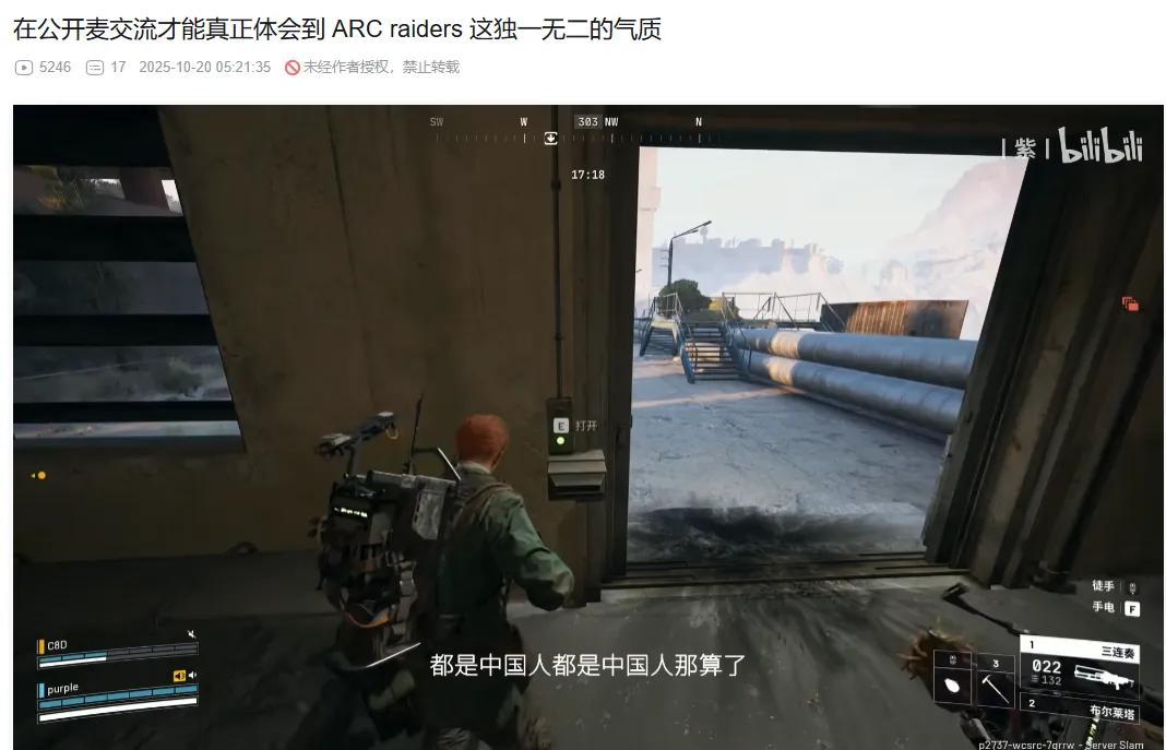 第一天我就刷到了經典“中國人不打中國人”的遊戲視頻,還挺有意思,也正如視頻標題所說,公共麥確實給同爲搜打撤的《ARC raiders》一種獨一無二的遊戲體驗。