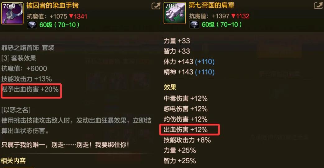 “罪惡套”有26%出血傷害,“帝國肩章”也有12%出血傷害,二者搭配可以發揮出更好效果,屬於異常流的排面擔當。