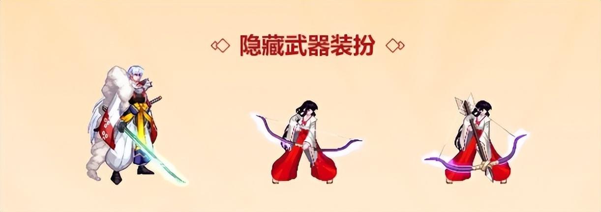 隱藏時裝主要有2套,分別對應爲:男鬼劍-殺生丸,弓箭手-桔梗!