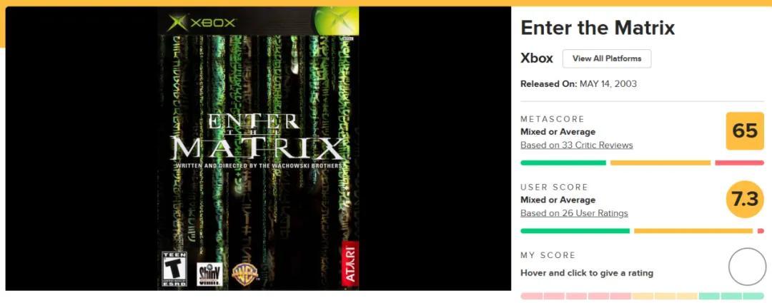《黑客帝國:進入矩陣》在Metacritic的評分
