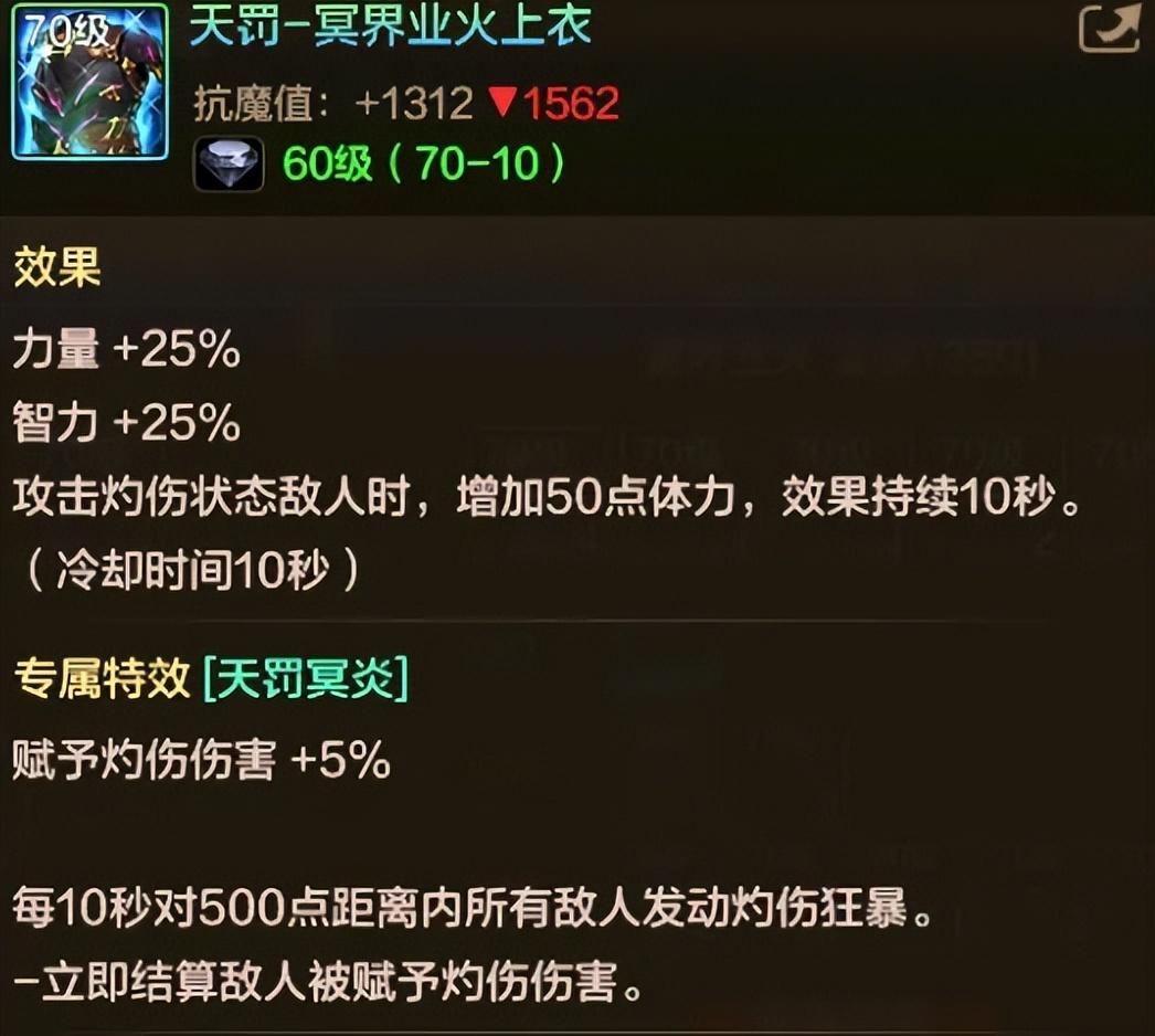 “業火上衣”每隔10秒對周圍500點距離敵人發動灼傷狂暴。
