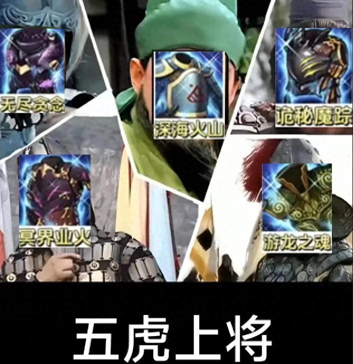 最近網上有一張“表情包”特別熱門,形容“超凡五虎將”的,它們分別爲:無盡上衣、深海上衣、詭祕魔蹤上衣、業火套上衣、以及游龍套上衣!