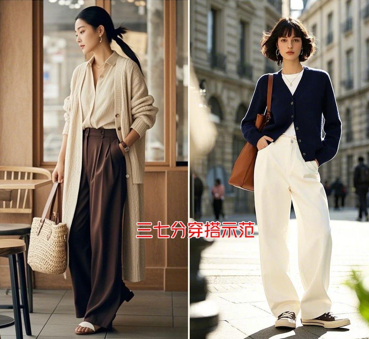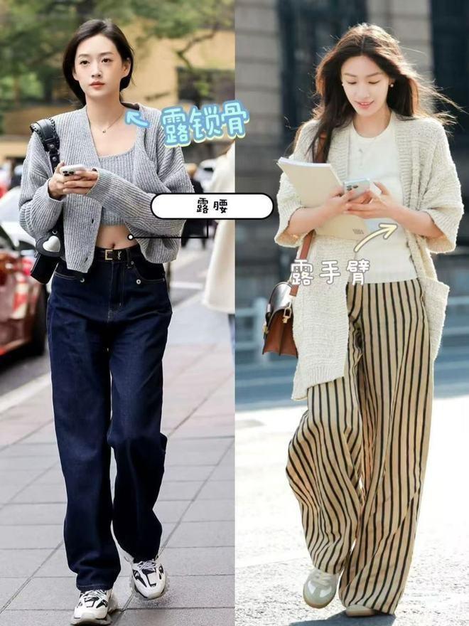 想要將奶奶衫穿出高級感,用對技巧是關鍵。長款奶奶開衫敞開穿,內搭塞進褲腰更顯高。短款奶奶開衫解開下襬紐扣,露出腰線位置,精緻不拖沓,瞬間就能穿出完美的黃金三七分比例。