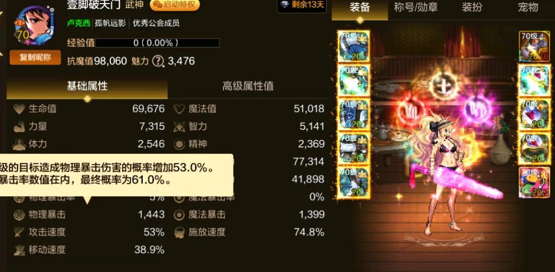 【7】劍魔,60級怪需要1731,70級怪需要2288暴擊!