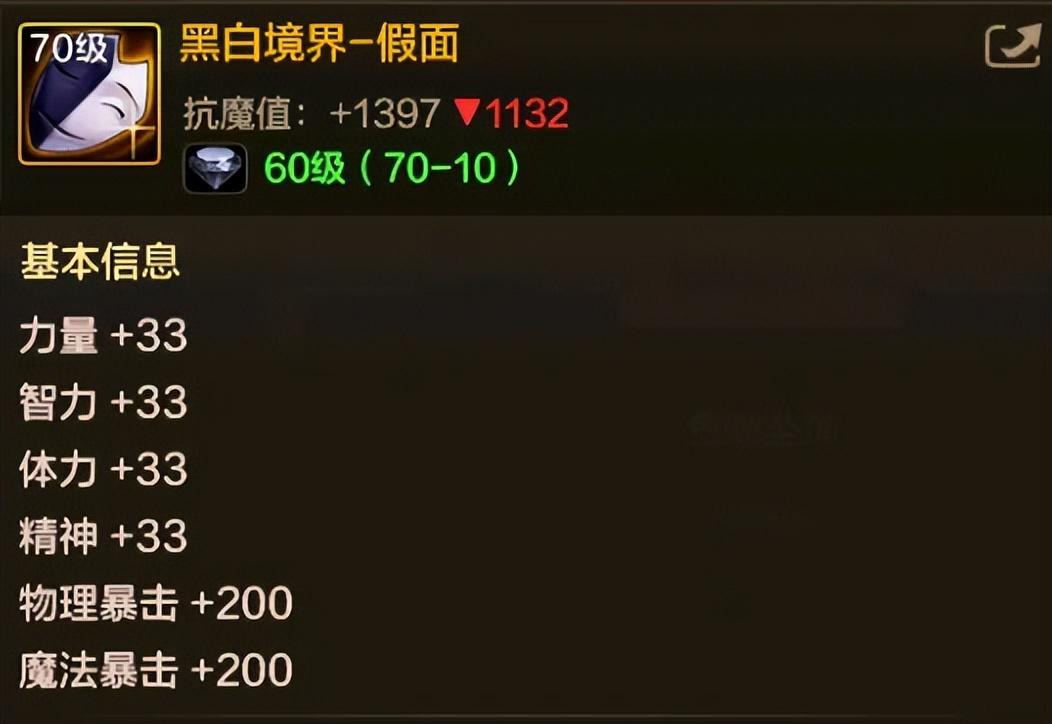 除此外,還有一件冷門裝備“黑白假面”,也可以提供200點暴擊,對於想要穩定爆發的職業來說,這也算一個挺不錯的選擇。