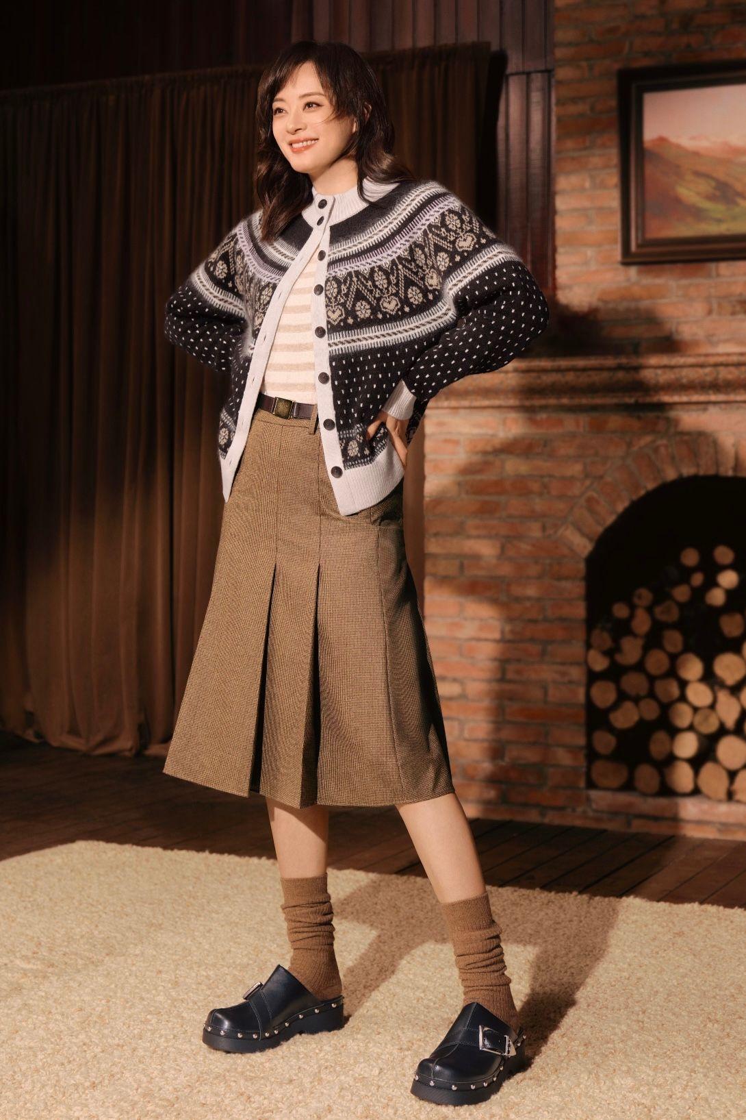 不得不說,孫儷真的好適合這種少女感的穿搭,完全沒有扮嫩的嫌疑。黑白色的費爾島毛衣外套,疊穿條紋衫,再搭配一條格子半身裙,裙頭位置貼合臀部曲線,顯瘦效果更好。