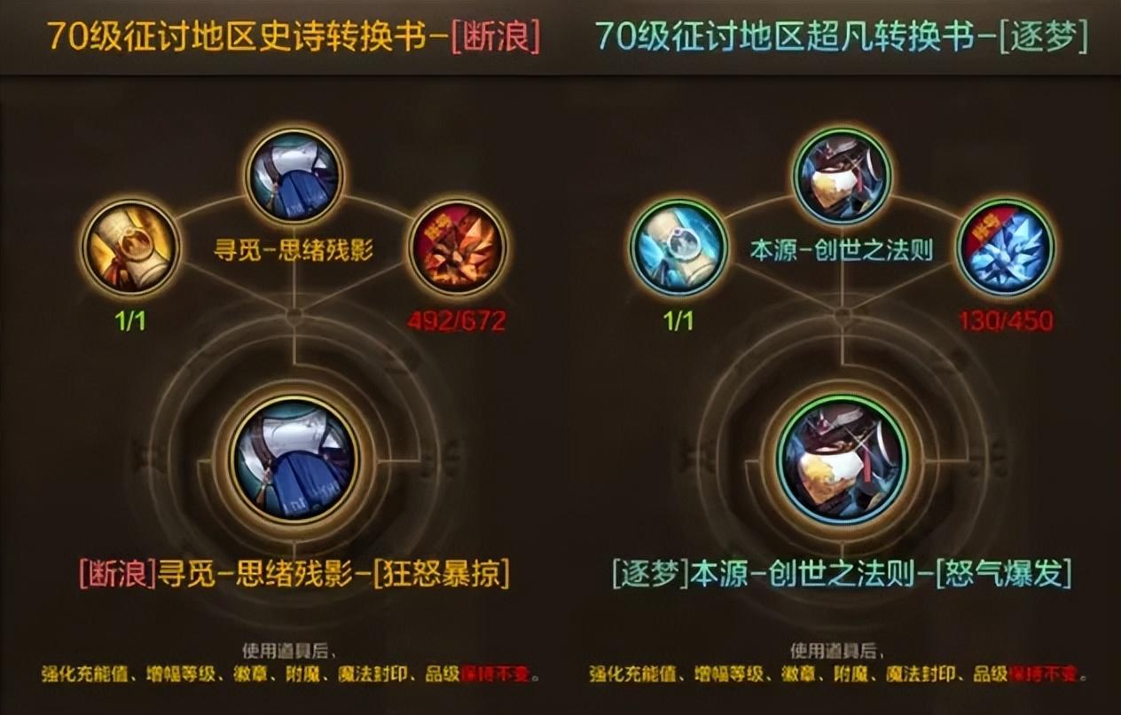 另一個是用材料升級現有的“70級史詩”,比如團本商店就有1個征討史詩升級書和1個征討超凡升級書。