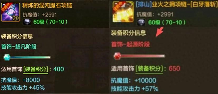 當首飾套裝達到650分後,即可觸發“起源階段”:+10000抗魔值,+57%技能攻擊力!