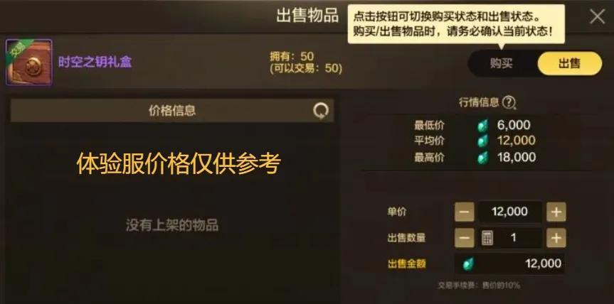 值得注意的點在於,“時空之鑰禮盒”可以上架到拍賣行,體驗服平均價格1.2萬泰拉,那麼抽10次就需要12萬泰拉,一輪50次就需要60萬泰拉!