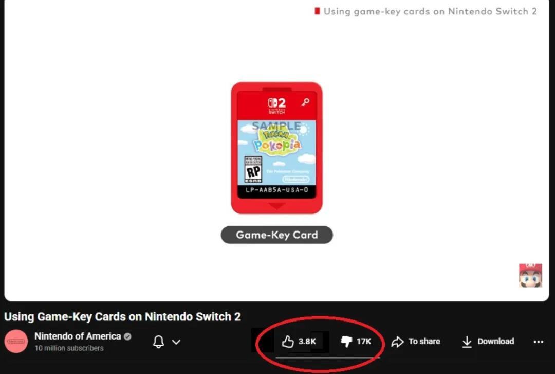 然後不到一天,任天堂的這個視頻收穫了數量誇張的“踩”,不少人紛紛在視頻下面留言,極力抵制這種鑰匙卡設計。