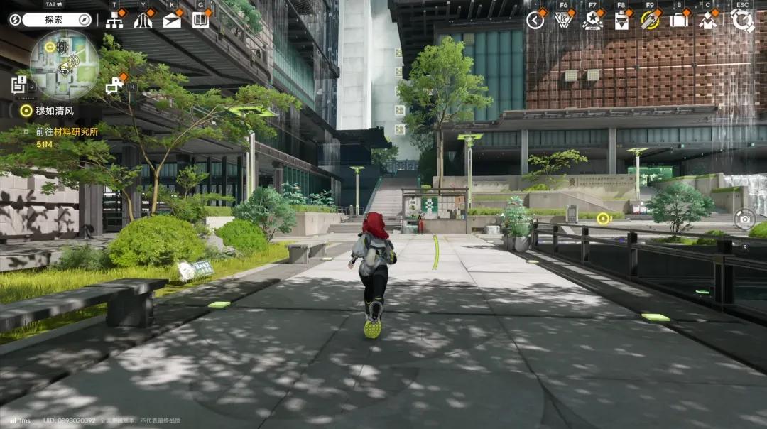 在這次的測試版本中,武陵城則終於展示其完整面貌——一箇中式園林風格的未來幻想都市,許多元素幾乎直接取用了當下國內常見的現代城市風貌,比如人民公園、高等學府,商圈佈局甚至很有幾分像是鷹角辦公地樓下的商場。