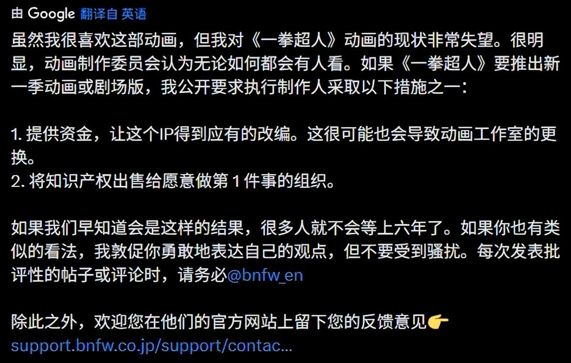而現在,大量粉絲、乃至包括平時專門發佈《一拳超人》相關內容的 KOL,都在呼籲觀衆取消訂閱,並要求更換動畫製作公司。