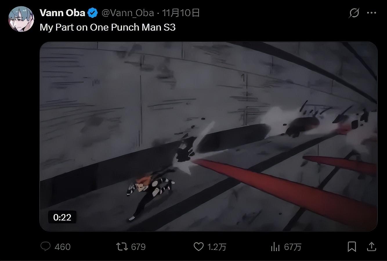 這次Vann Oba也很早就在推特發言,說自己參與了《一拳超人》第五集中的“某一非常酷的cut”,並且還煞有介事地爲第五集的播出進行了倒計時。
