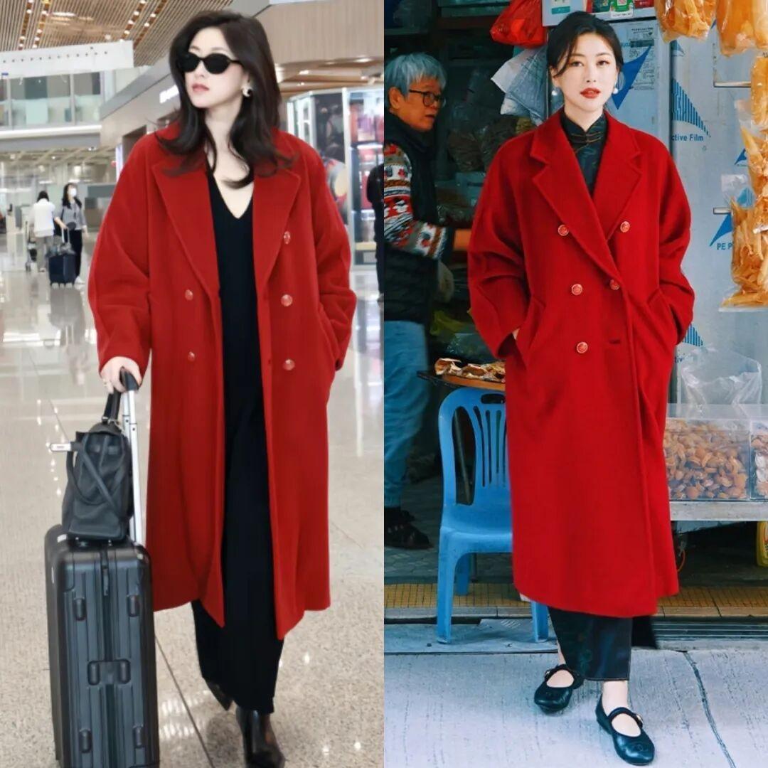 每個中年女人的衣櫥裏,基本上都會有一件紅色大衣。穿上紅色大衣,好運立馬降臨,經典的翻領+雙排扣設計,慵懶又藏肉。疊穿修身款式的黑色連衣裙,配雙黑色平底鞋,步伐堅定而自信,美的好輕鬆。