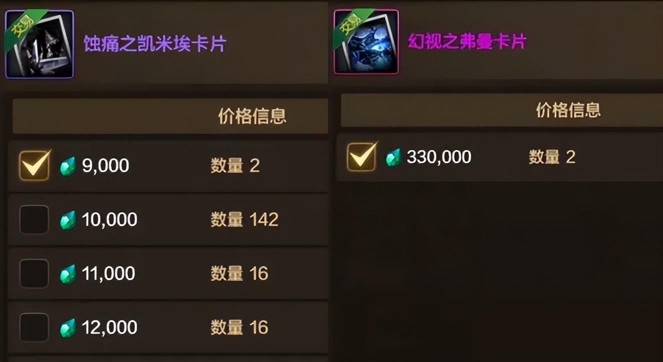 魔法石“凱米埃卡片”,9000泰拉;“幻視卡片”,33萬泰拉!