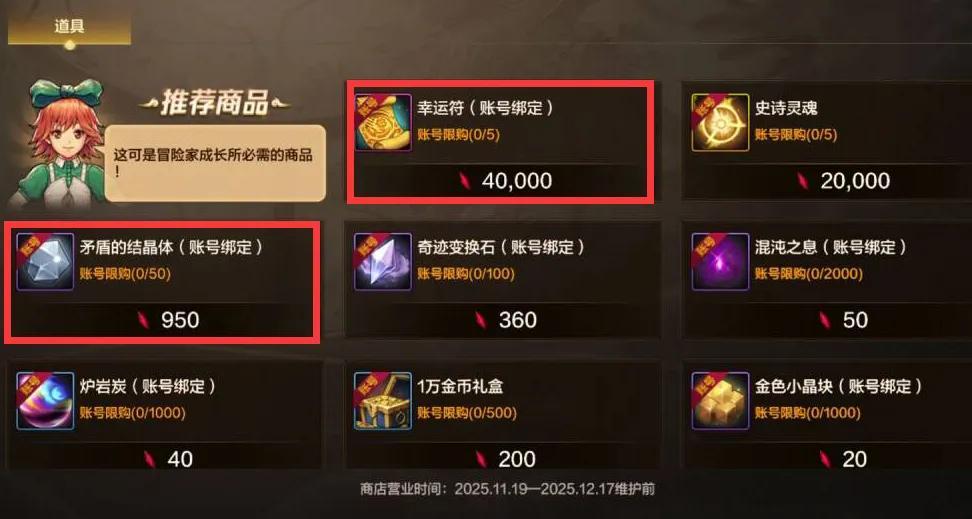 【2】“魔力結晶商店”可以換5張幸運符+50個矛盾結晶體,商店營業時間到12.17號,多餘的魔力結晶也不會刪除。
