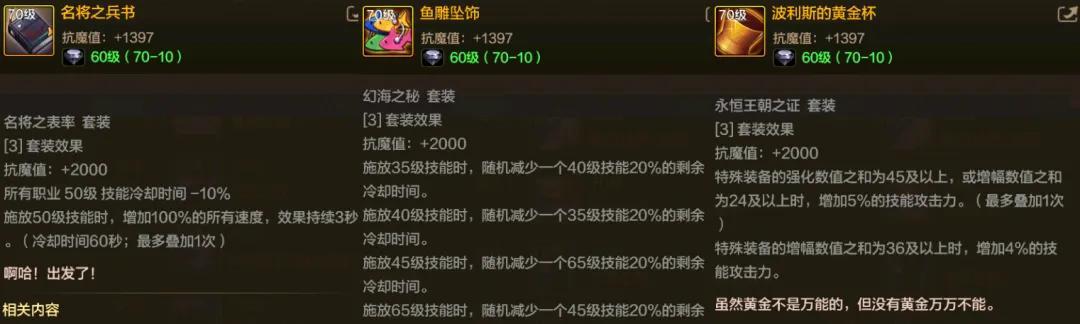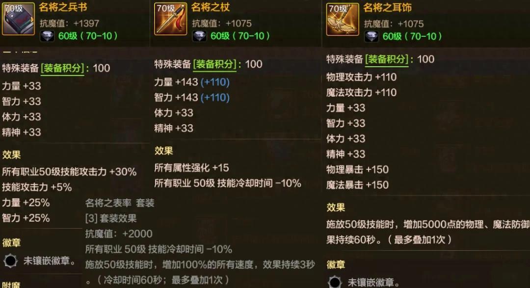 當然了,如果選擇佩戴“散搭3件套”的話,也存在一個較明顯短板,那就是缺少套裝效果的2000點抗魔值。