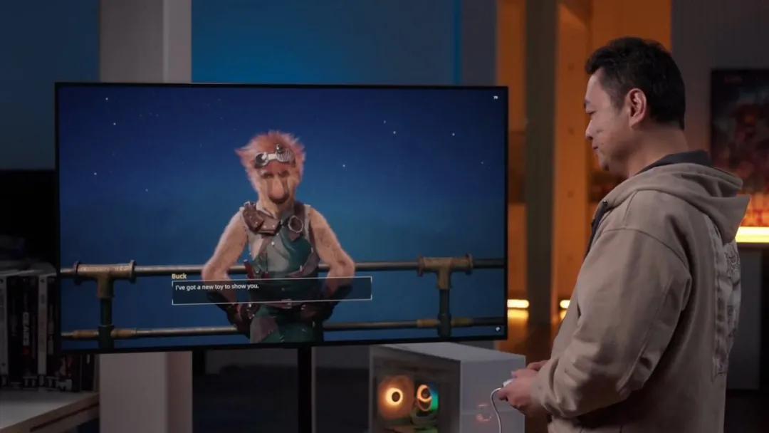 這個場景有些特殊,按理說大家應該是在遊戲展碰面的。但當時恰逢NVIDIA首發最新的50系列顯卡,黃仁勳親自爲CES主持開幕,張弢和鈦核工作室的新作《Zoopunk》也被邀請來爲新顯卡做技術背書,作爲演示其本地AI功能的重要產品之一。