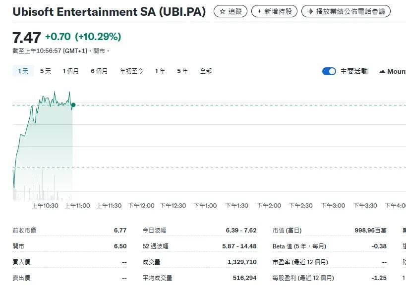當然,在我們寫下這篇文章的時候育碧市值已經大漲,即將突破10億歐元