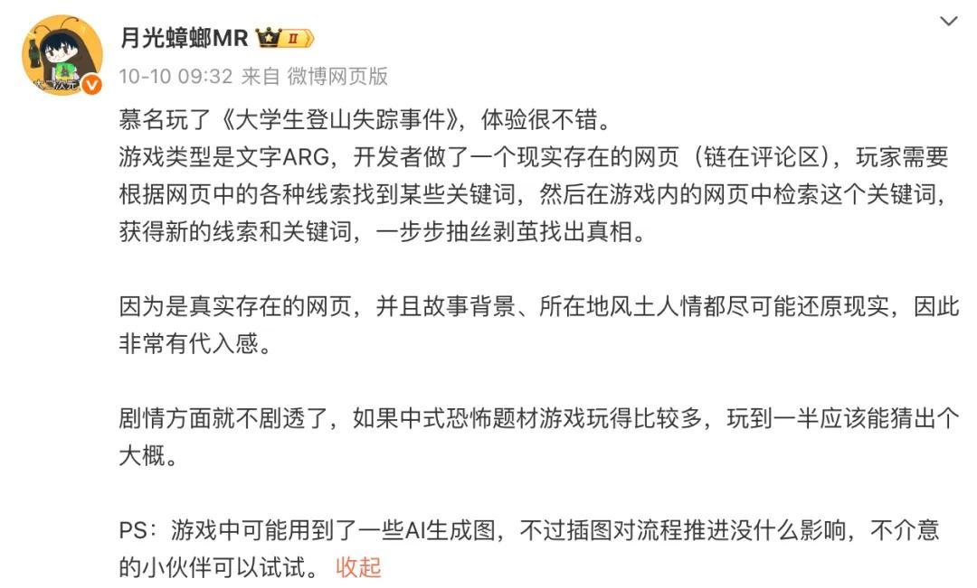 然而,就是這樣一款輕體量的網頁ARG,或者說“虛擬實境遊戲”,發佈後有了意想不到的出圈效果。