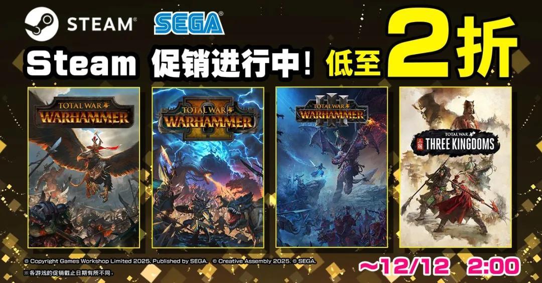 此外,《全面戰爭》系列也於今天在Steam開啓了25週年特賣活動,折扣力度不小。對於對該系列感興趣的玩家來說,應該是個不錯的入坑時機。系列的最新作也將在12月4日發表。