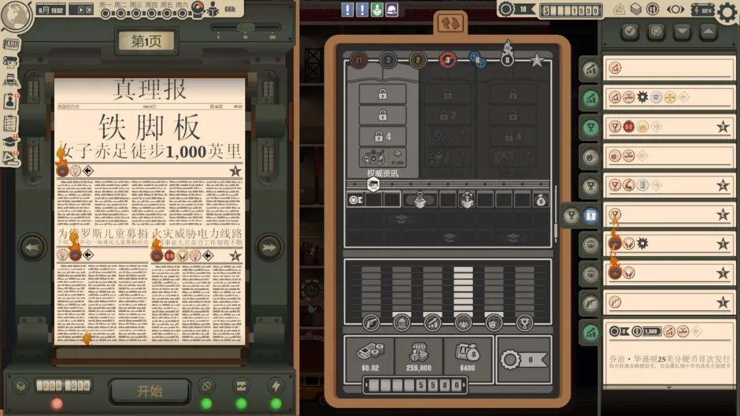當把排好版的報紙送進印刷機,隆隆的機械運轉聲後,好像真的能嗅到油墨的氣味,飛速增長的銷量和收入也帶來了一絲滿足。玩家會下意識加快節奏,把一天又一天的排版推進,彷彿自己真的在寫一段報業史。